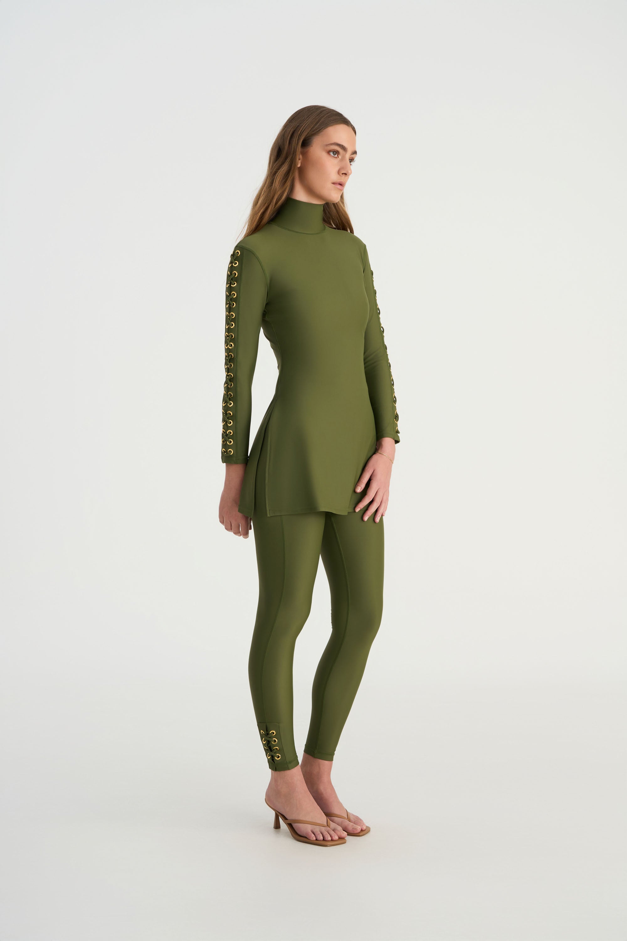 CEMILE - LEGGINGS WITH EYELET OLIVE